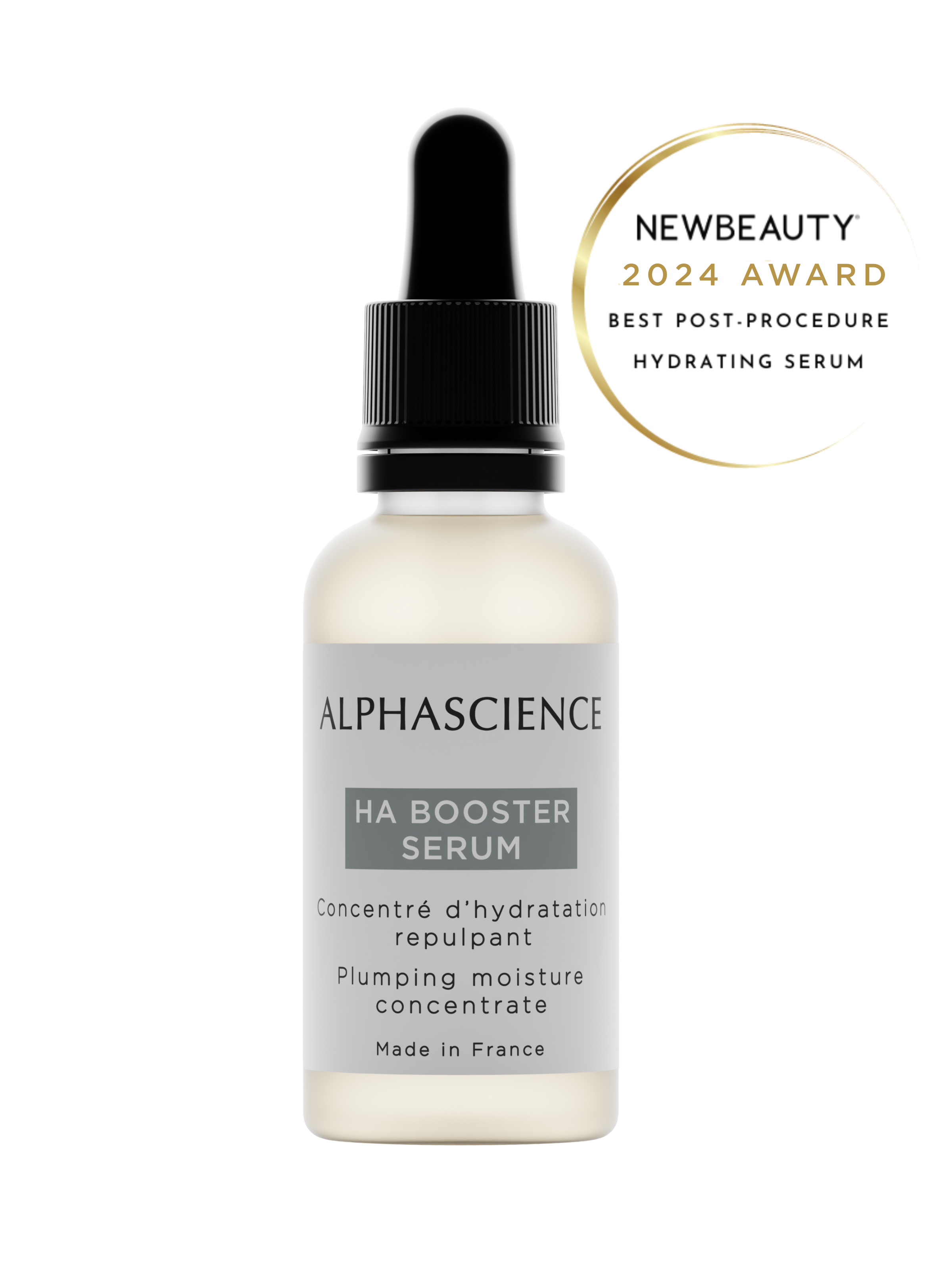 After applying your ALPHASCIENCE antioxidant serum, apply your HA BOOSTER SERUM to deeply hydrate. Complete with our eye contour EYE MATRIX and one of our anti-aging creams.